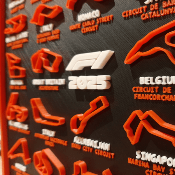 Este calendario está diseñado con detalles precisos y una impresión 3D de alta calidad, lo que lo hace perfecto para cualquier persona que busque un accesorio único y emocionante. Con un diseño que incluye todos los grandes premios de la temporada 2025, este calendario es ideal para coleccionistas y entusiastas.